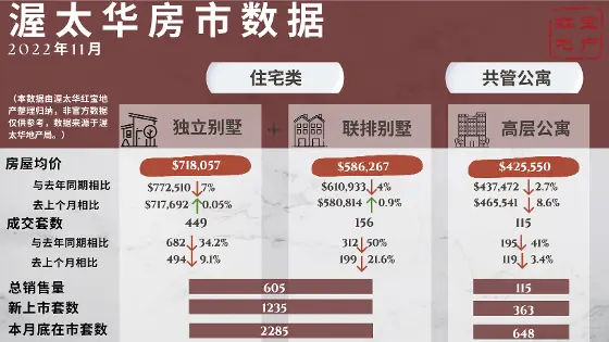 11月公寓类房产的平均销售价格为$415,533,比2021年下降了4%。