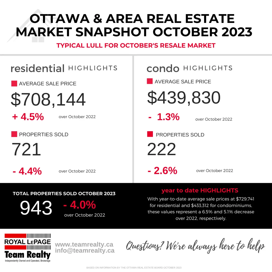 “Life is expensive these days, which likely has both buyers and sellers staying put,” says Ken Dekker, OREB President. “We’re seeing a slow decline in sales activity but it’s minimal and not unexpected for this time of year. Prices are adjusting and coming down, which is also indicative of the types of homes that are selling — apartments seeing the largest increase in sales activity over last October. While Ottawa’s inventory is slowly building, chronic supply issues mean there’s always an undercurrent of demand. Don’t let the lull fool you: now is a prime time for buyers to be looking for opportunities before the current carries us from a balanced market into seller’s territory.”