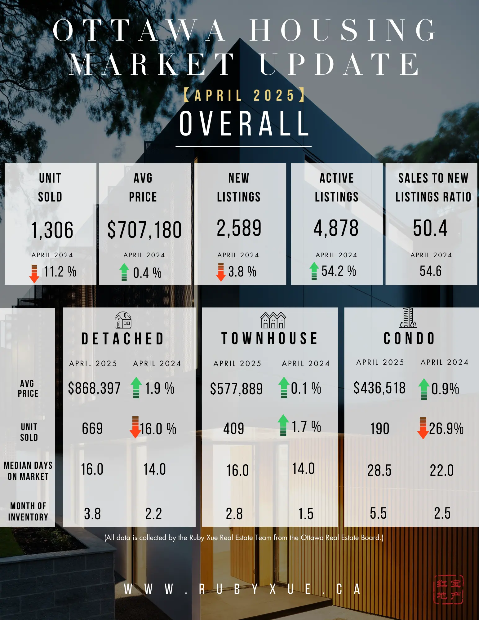The number of homes sold through the MLS® System of the Ottawa Real Estate Board (OREB) totaled 1,306 units in April 2025. This represented an 18.4% increase from March 2025, but an 11.2% decline from April 2024.