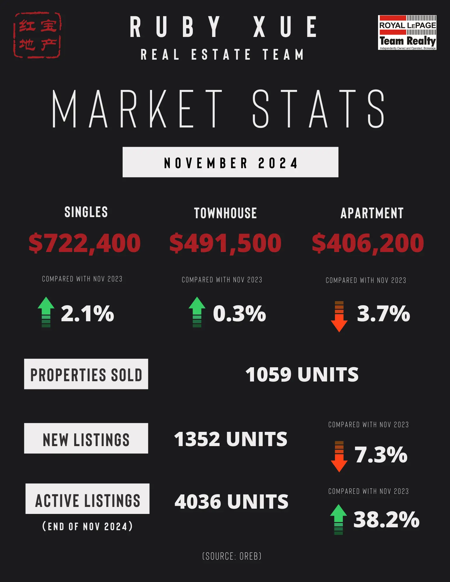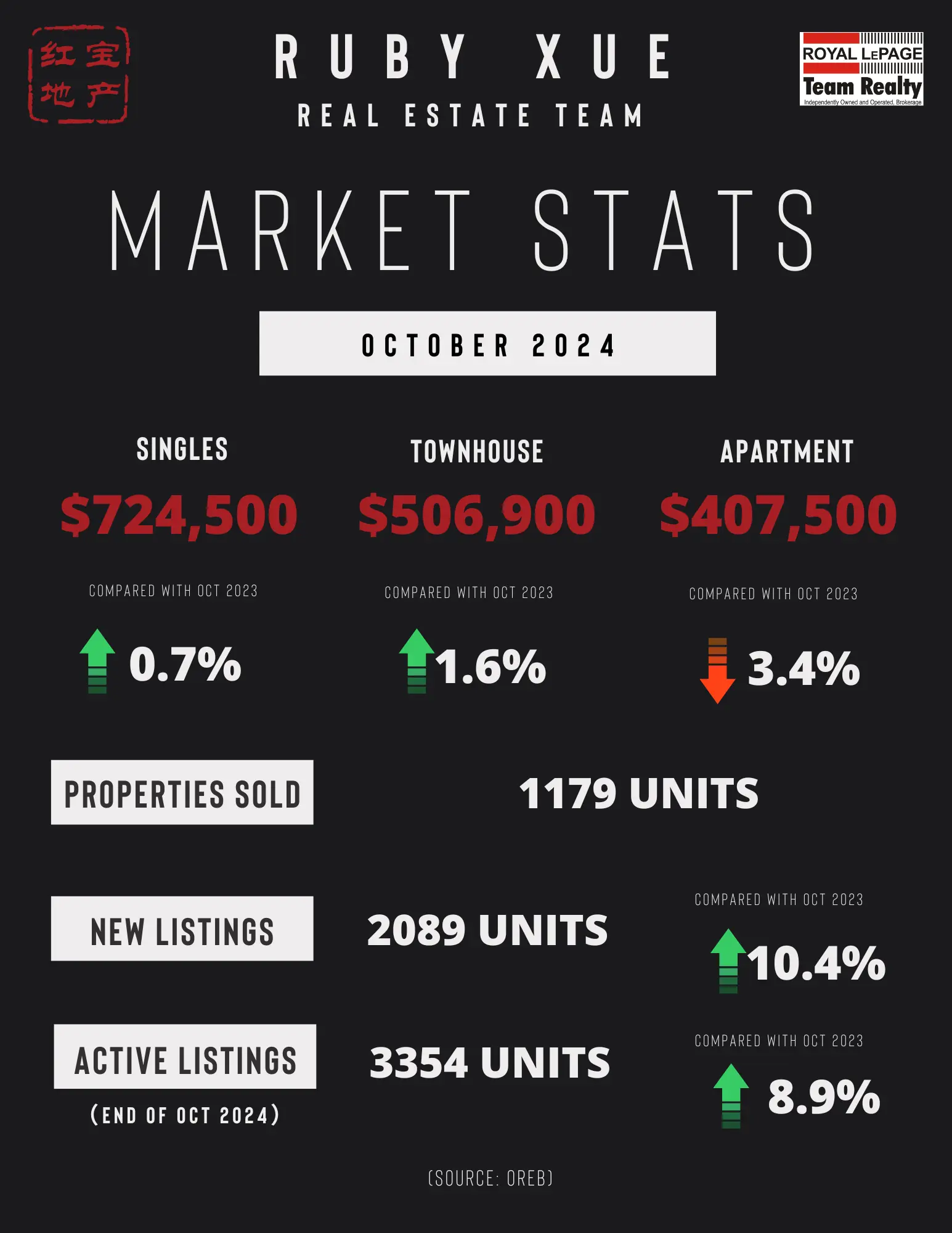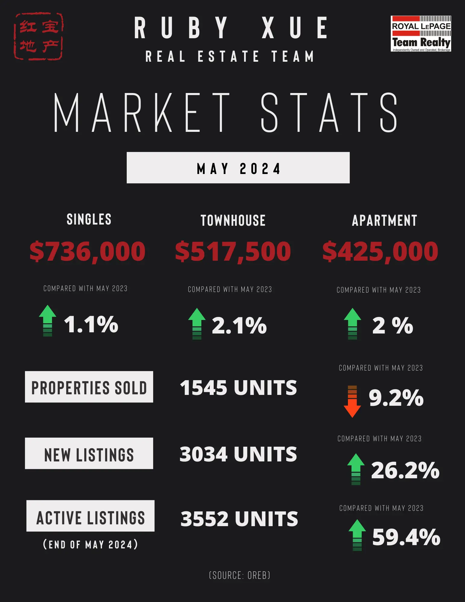 “While April sales were down year-over-year, we saw a healthy month-over-month increase—an encouraging sign of growing momentum as we move through the spring market,” says OREB President Paul Czan. “Inventory remains at higher levels compared to previous years, indicating a gradual move towards a balanced market.”