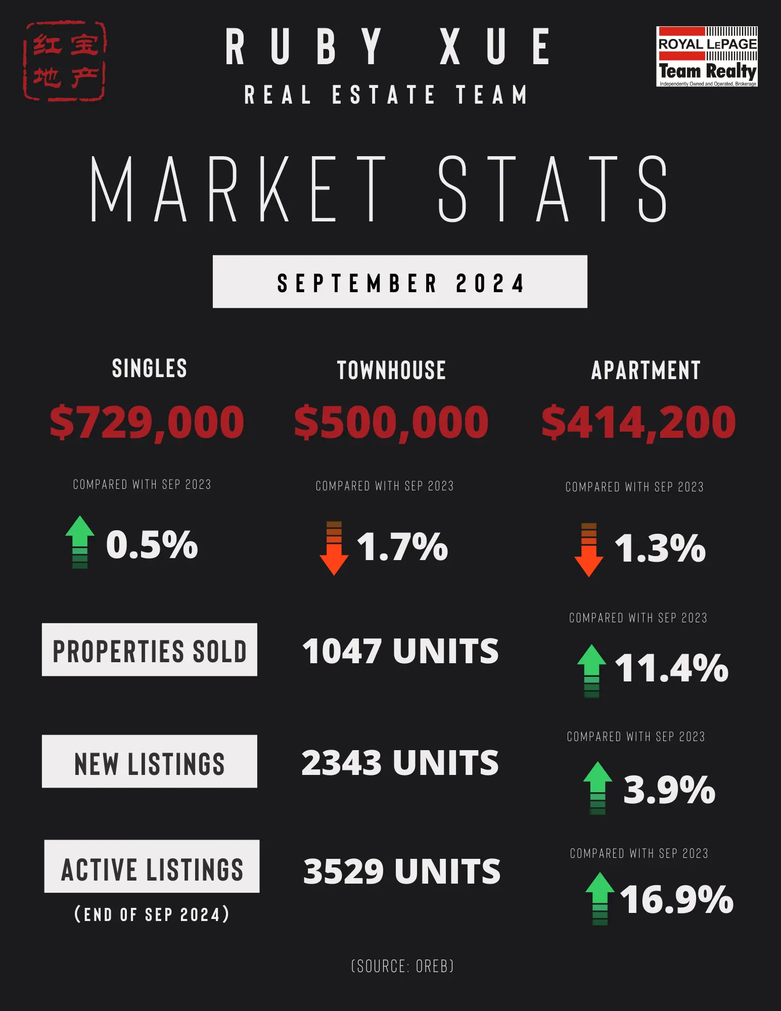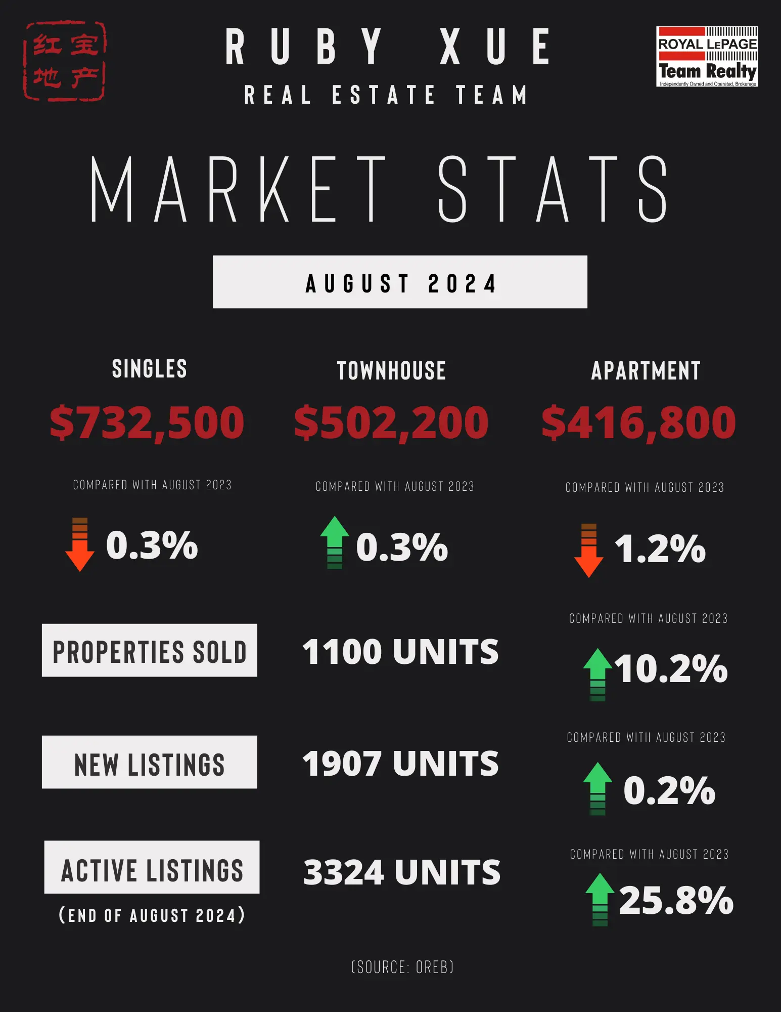 OREB cautions that the average sale price can be useful in establishing trends over time but should not be used as an indicator that specific properties have increased or decreased in value. The calculation of the average sale price is based on the total dollar volume of all properties sold. Prices will vary from neighbourhood to neighbourhood.
